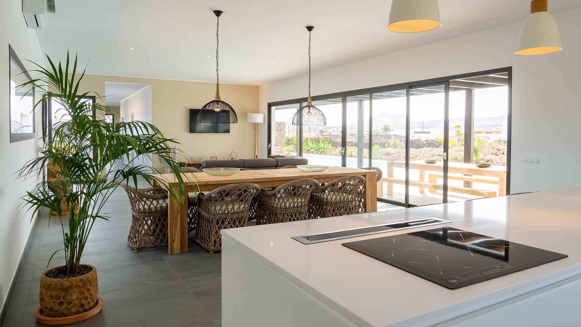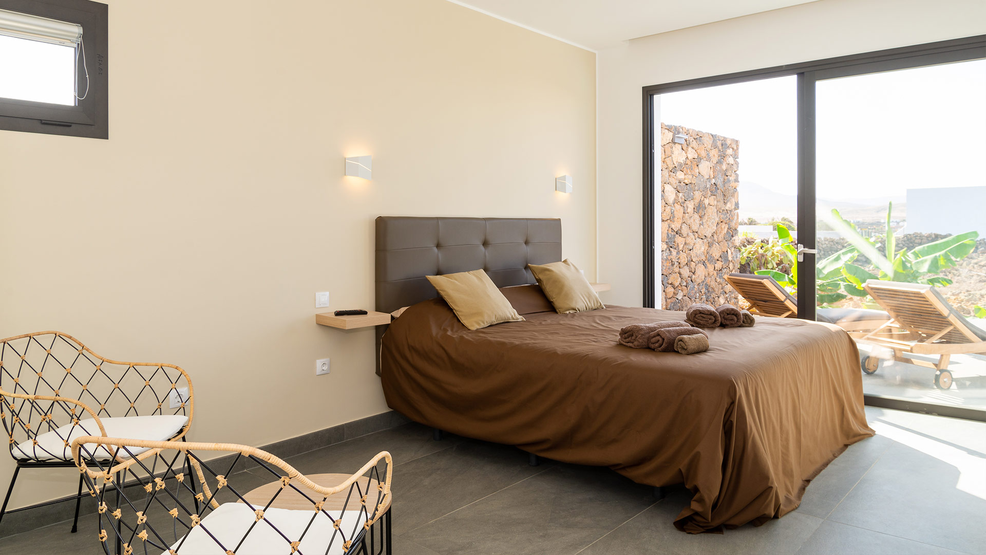 Located in the heart of Lajares, Villa Alfa is a true oasis of tranquility. Surrounded by lush tropical gardens, this villa offers privacy for guests. The modern architecture with white walls perfectly complements the warm and elegant interiors. The large swimming pool is the star of this garden paradise: heated at any time of the year, it allows guests to spend pleasant moments of relaxation.