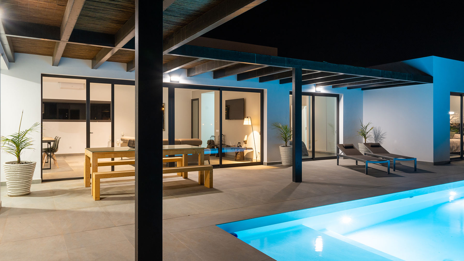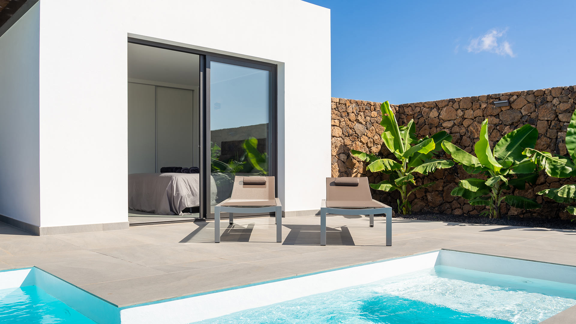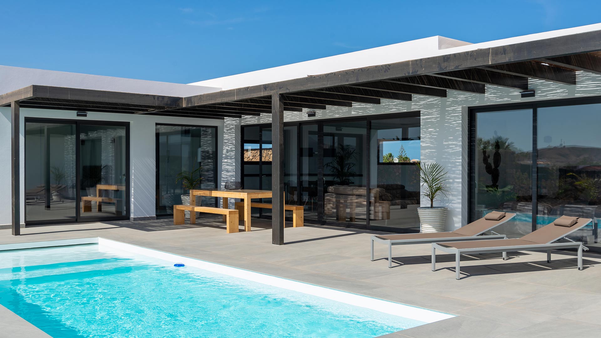 Villa Beta is a charming residence located a short distance from the centre of Lajares. This villa boasts a minimalist and elegant design, with large windows allowing panoramic views of the garden and swimming pool. The spacious sun terrace is perfect for relaxing in the sun.