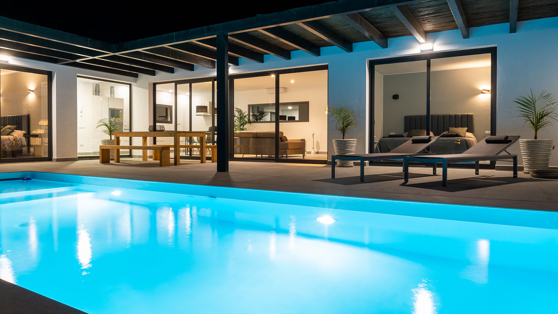 Villa Beta is a charming residence located a short distance from the centre of Lajares. This villa boasts a minimalist and elegant design, with large windows allowing panoramic views of the garden and swimming pool. The spacious sun terrace is perfect for relaxing in the sun.